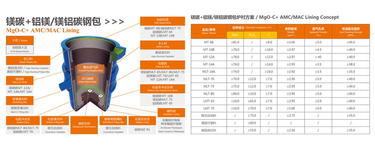 • 鎂碳+鋁鎂/鎂鋁碳鋼包